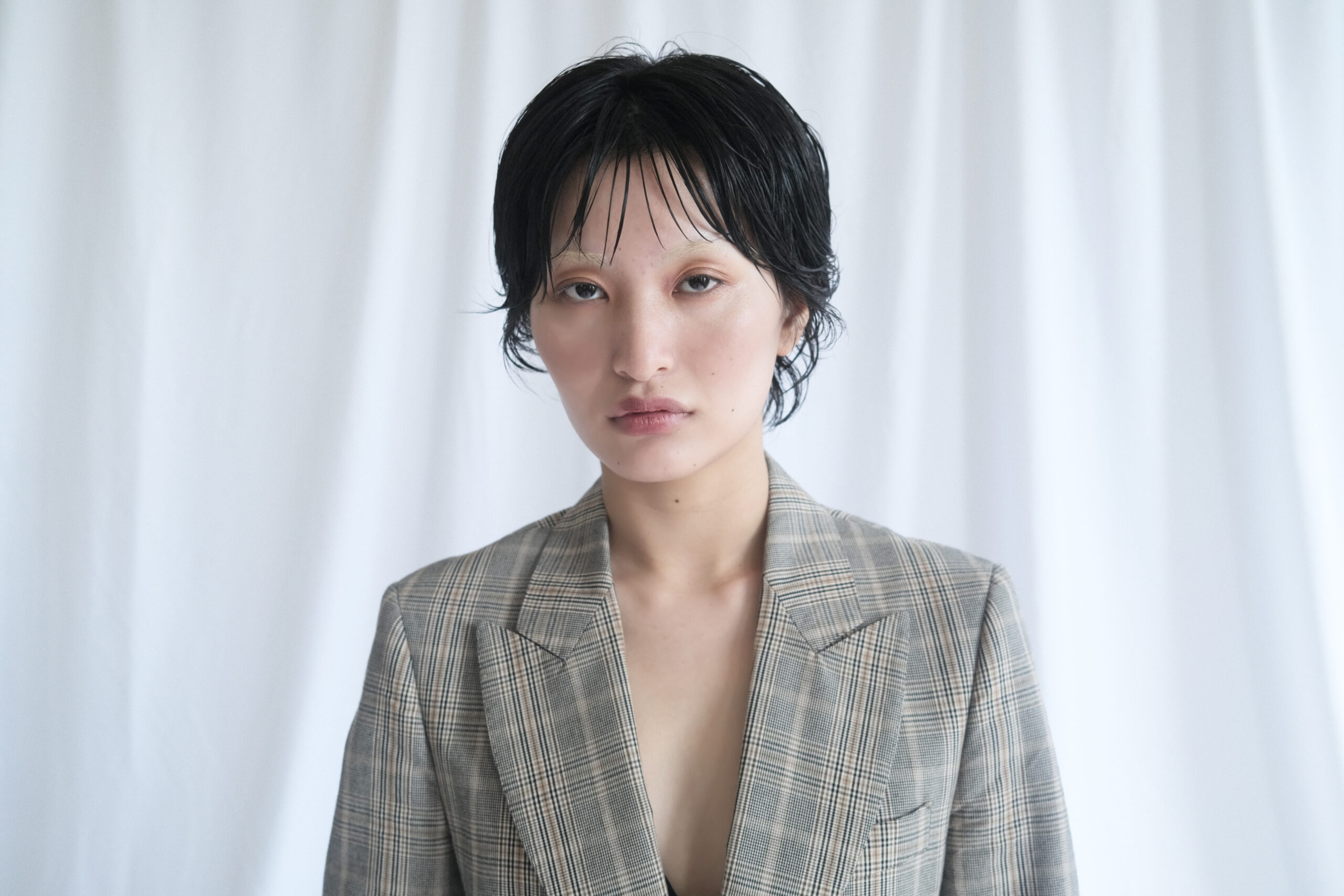 マッシュウルフのカットをベースに毛先だけワンカールのパーマが軽やかなイメージで前髪の抜け感がよりカジュアルに仕上げます。